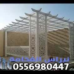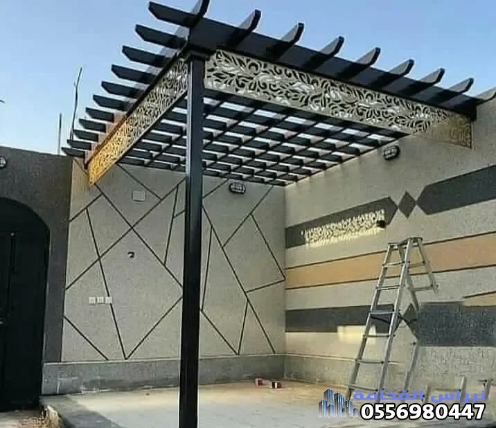 مظلات الحديد (الشرائح والمجدول): توفر قوة فائقة وعمر افتراضي طويل. يتم تصميمها بأشكال هندسية عصرية، وتُدهن بدهانات مقاومة للصدأ والتآكل، وتستخدم غالباً لإضافة عنصر عصري وديكوري.