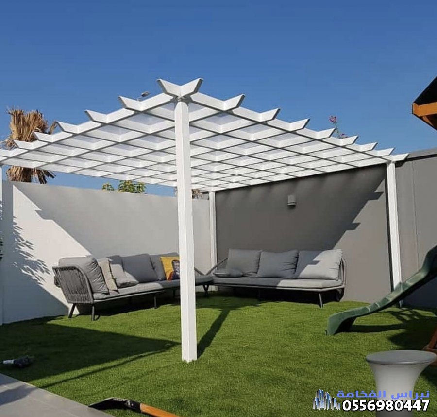 الحماية من العوامل الجوية الأخرى: توفر حماية من الأتربة والأمطار المفاجئة، ما يحافظ على نظافة الأثاث الخارجي والمساحة المظللة.