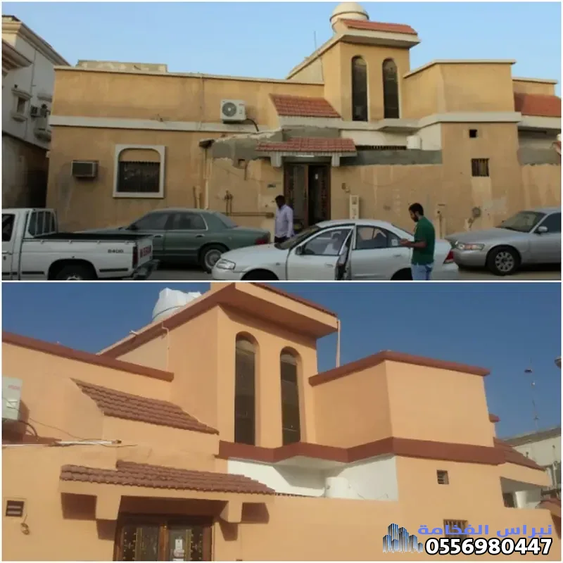 الواجهات الخارجية: ترميم الواجهات وتحديثها باستخدام مواد متينة وعصرية، مع إمكانية استخدام الطلاء المقاوم للعوامل الجوية (مثل البروفايل وكسر الرخام) أو الحفاظ على الطابع القديم مع التجديد.
