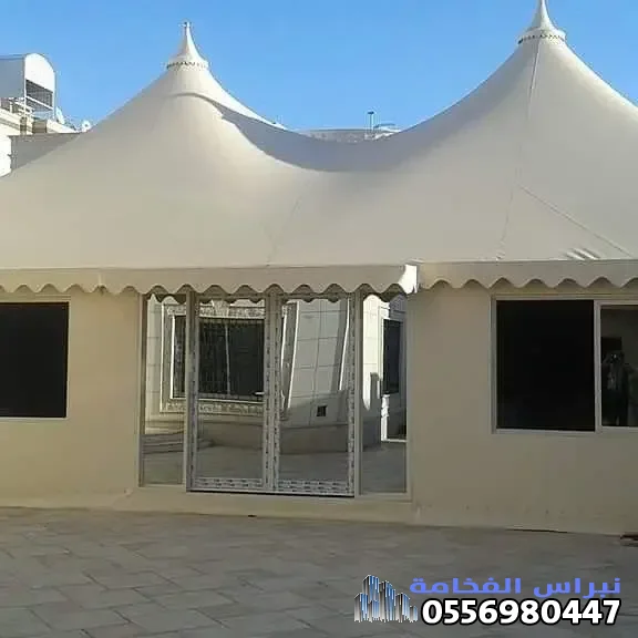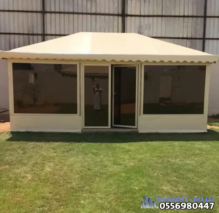 - الهياكل المعدنية المعززة: يتم بناء الهياكل الداعمة من الحديد أو الاستيل المقوى المطلي بمواد مقاومة للصدأ والتآكل. هذه الهياكل مصممة هندسياً لتحمل أقوى الرياح والعواصف مع المحافظة على خاصية سهولة وسرعة التركيب والفك، ما يعزز من كونها حلاً مثالياً للمساحات المتنقلة أو المؤقتة الفاخرة.