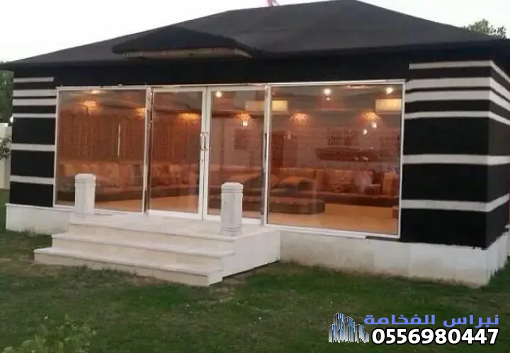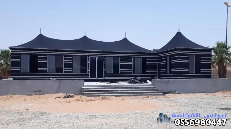 هياكل معدنية قوية قابلة للفك السريع، وتجهيزات داخلية فاخرة. أصبح التركيز على دمج التقنيات الذكية (كالإضاءة والتكييف)، وتركيب نوافذ زجاجية معزولة، والبطانة الداخلية المترفة بأقمشة السدو والألوان الملكية. إنها مساحات متعددة الاستخدامات، تجمع بين كرم الضيافة العربية ومتطلبات الحياة العصرية الفخمة.