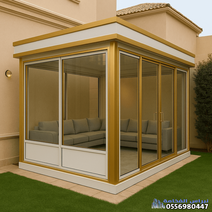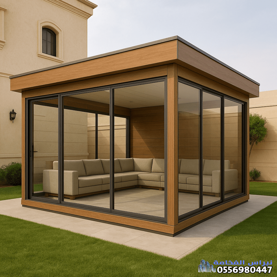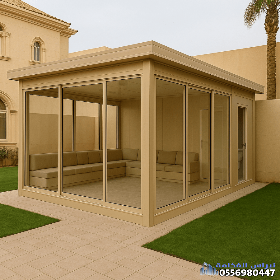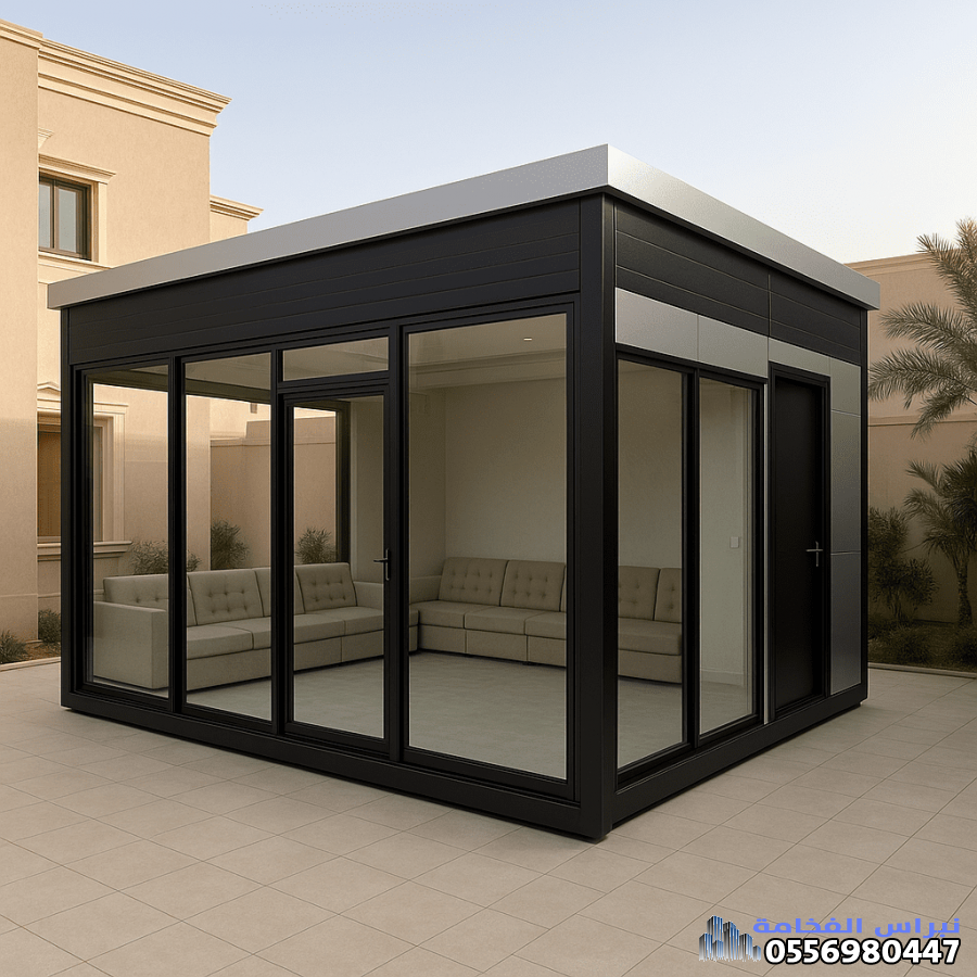 إضافة الواجهات الزجاجية (عادةً زجاج مزدوج أو معالج) تحوّل الغرفة من مجرد هيكل وظيفي إلى وحدة عصرية مضيئة. هذا مثالي لـ: