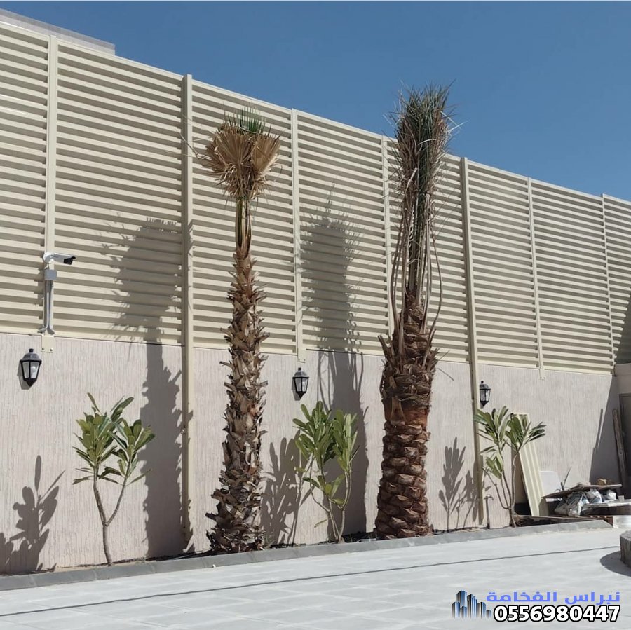 - الوصف: تتكون من ألواح معدنية أفقية أو عمودية متداخلة بزاوية معينة (عادةً ما تكون مائلة) تسمح بحجب الرؤية بشكل كامل 100% مع ترك مساحة بسيطة لمرور الهواء الخفيف.