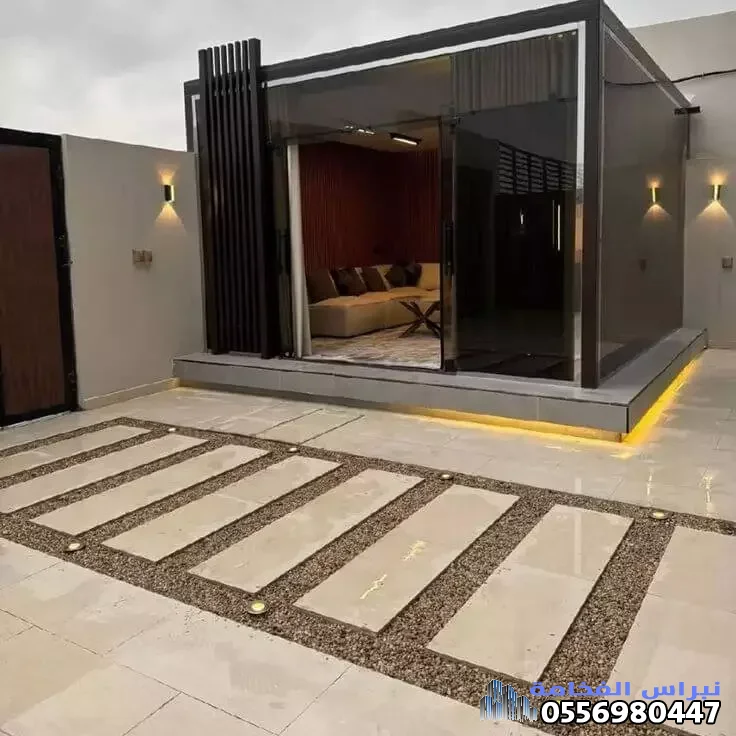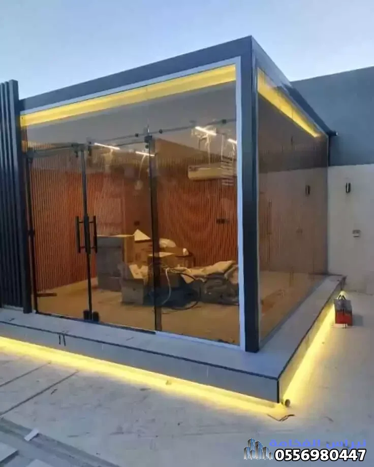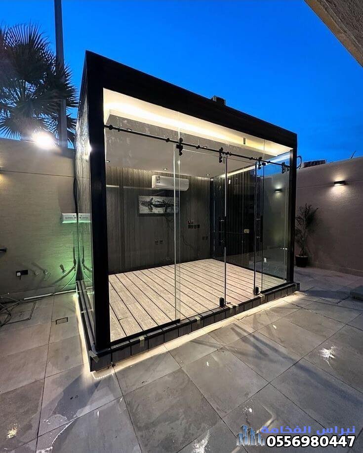 مراحل بناء المجلس الزجاجي الخارجي بالدمام