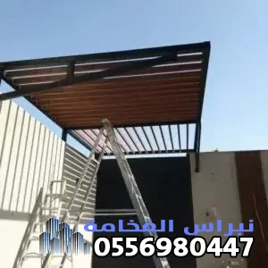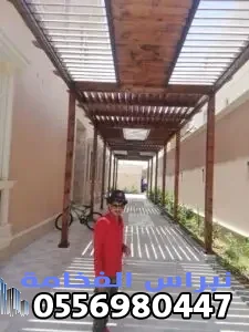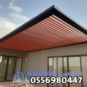 - المظلات الخشبية (الحديد بالشكل الخشبي): تمنحك مظهر الخشب الطبيعي مع متانة الحديد ومقاومته للتآكل.