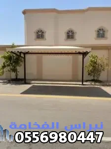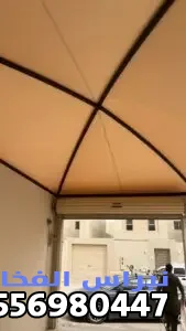 - مظلات السيارات: يتم تصميمها بأشكال (كابولي، إكس، ومخروطي) باستخدام قماش الـ PVC الكوري أو الألماني عالي الكثافة.