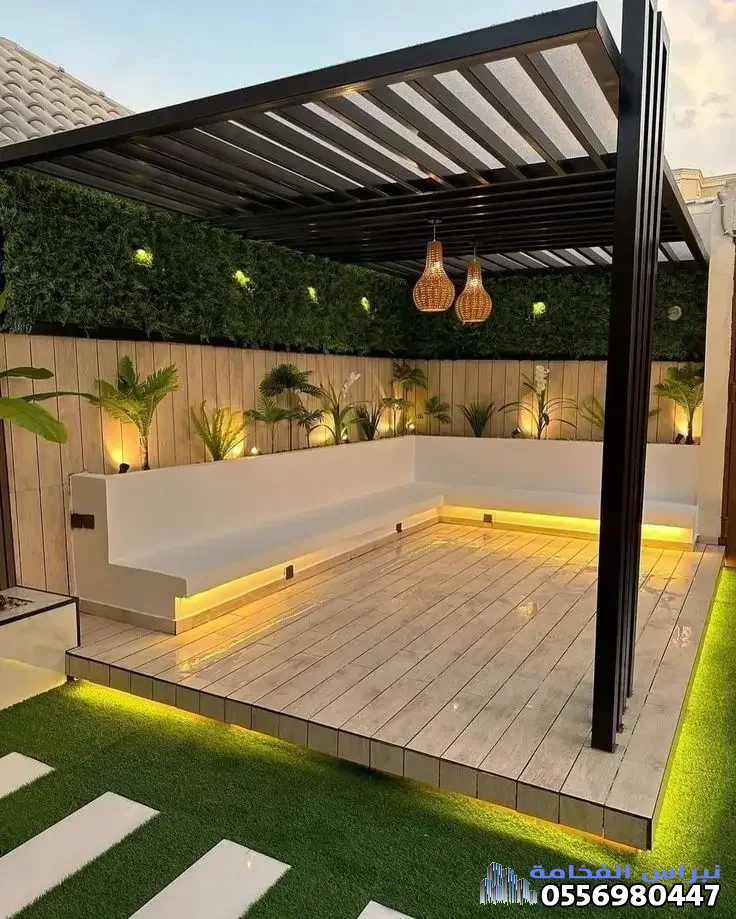 - الإضاءة المدمجة: لم تعد بحاجة لتركيب مصابيح خارجية مشتتة؛ البرجولات الحديثة تأتي بشرائط إضاءة مخفية تضفي جواً ساحراً في المساء.